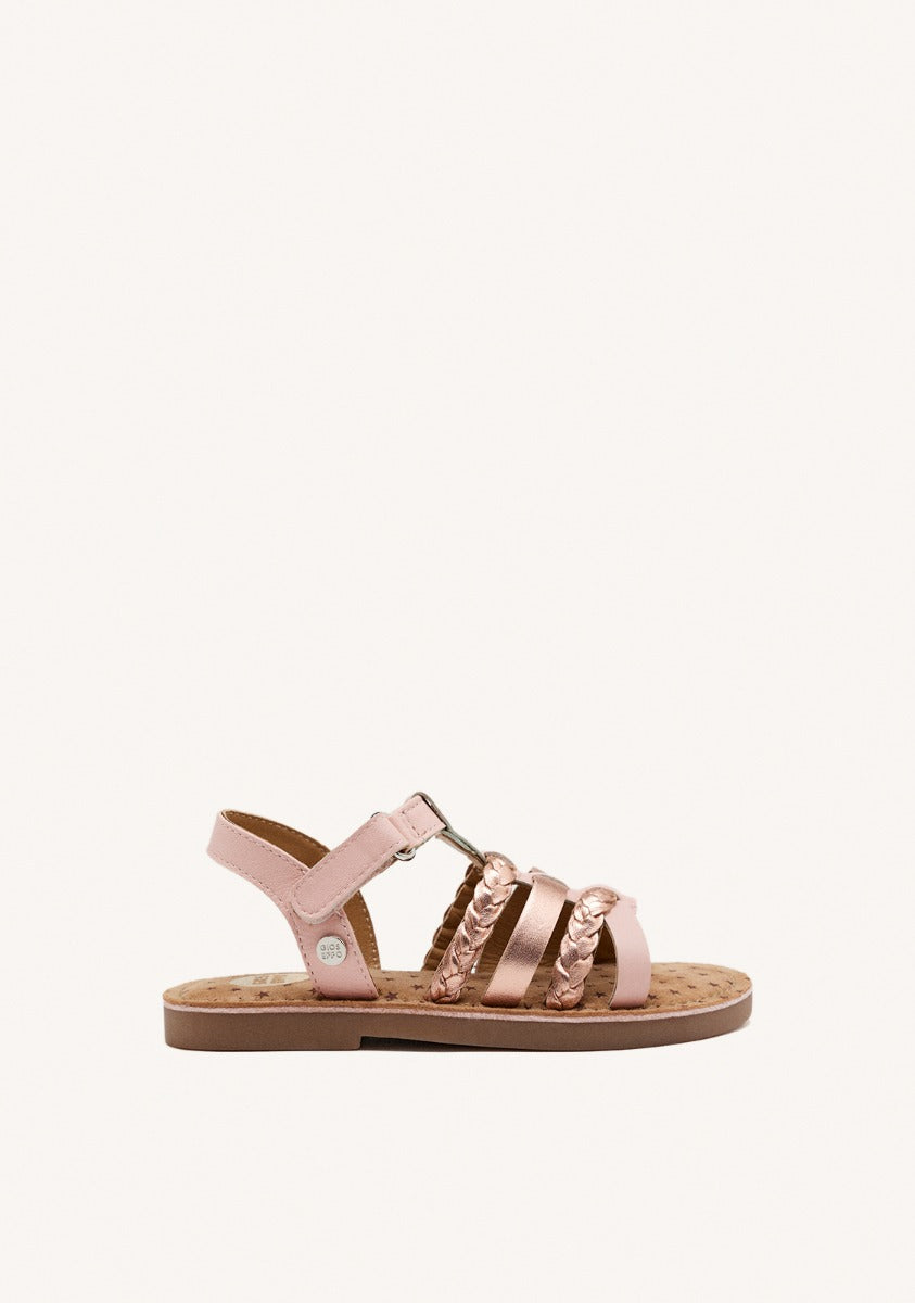 Leather Gioseppo sandals with braiding and shine. They have a soft and padded suede-type leather sole. Adjustable ankle closure.