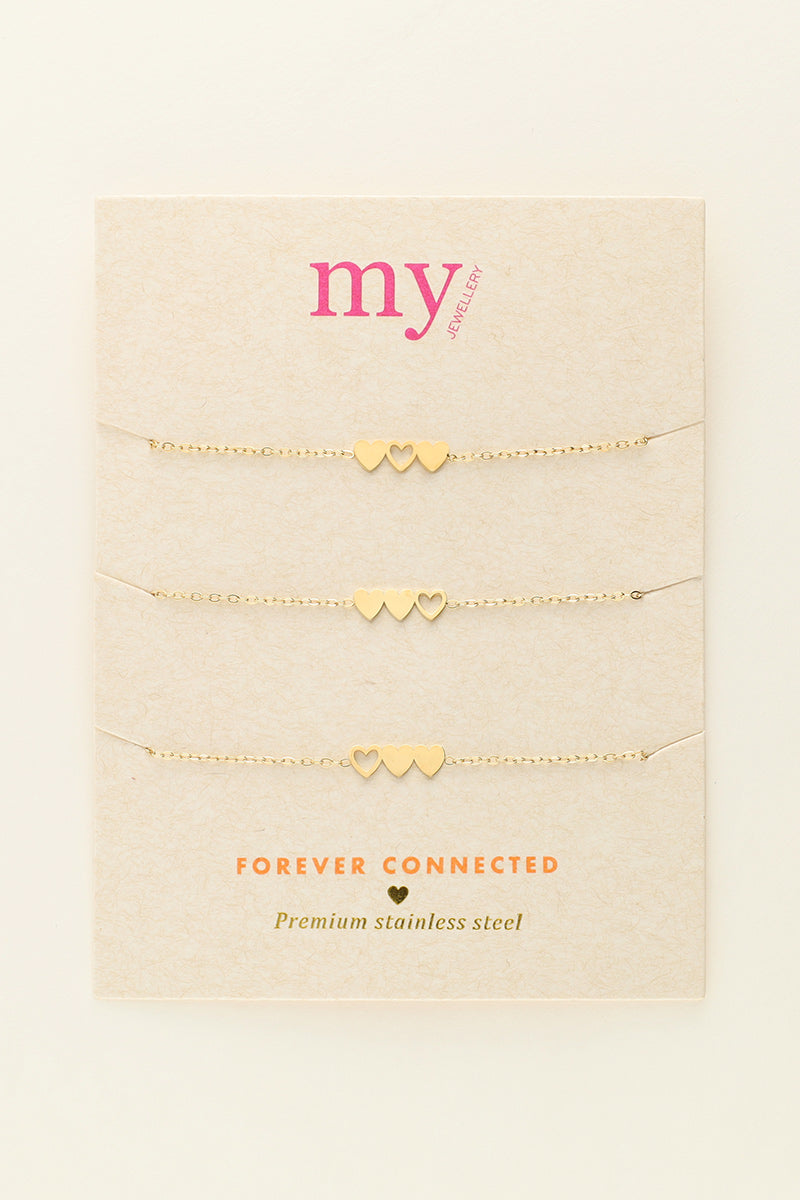 - The set features 3 bracelets
